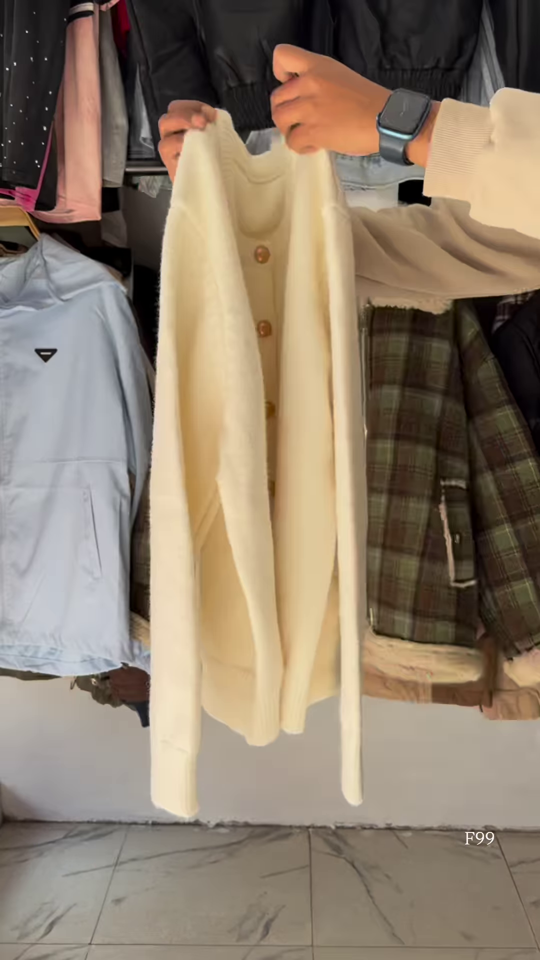 – Ribbed cuffs, hem, and neckline maintaining the cardigan’s shape wear after wear