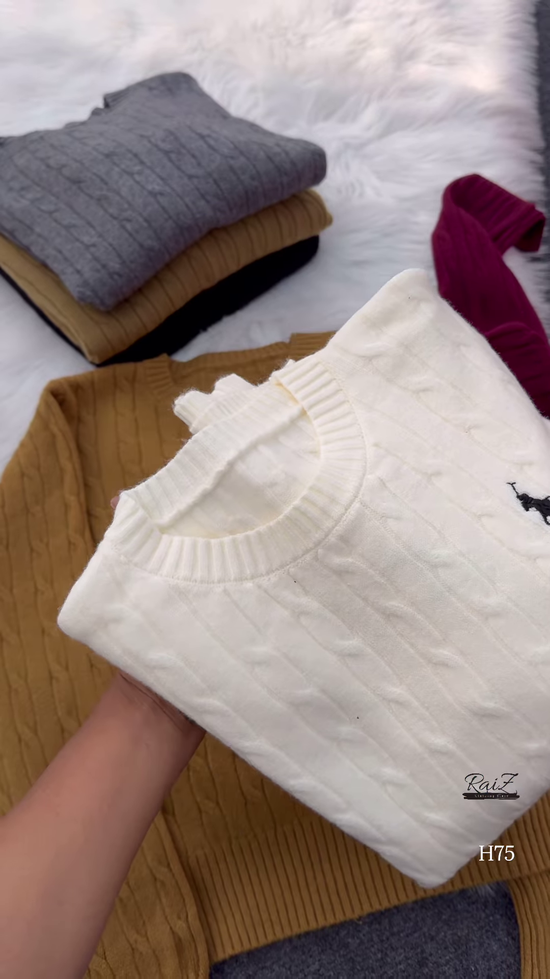 Upgrade your knitwear lineup with this classic cable-knit sweater collection, available in six elegant shades. Each sweater features a timeless texture, subtle chest embroidery, and a soft, structured silhouette—perfect for layering, gifting, or boutique styling. 🧵👕