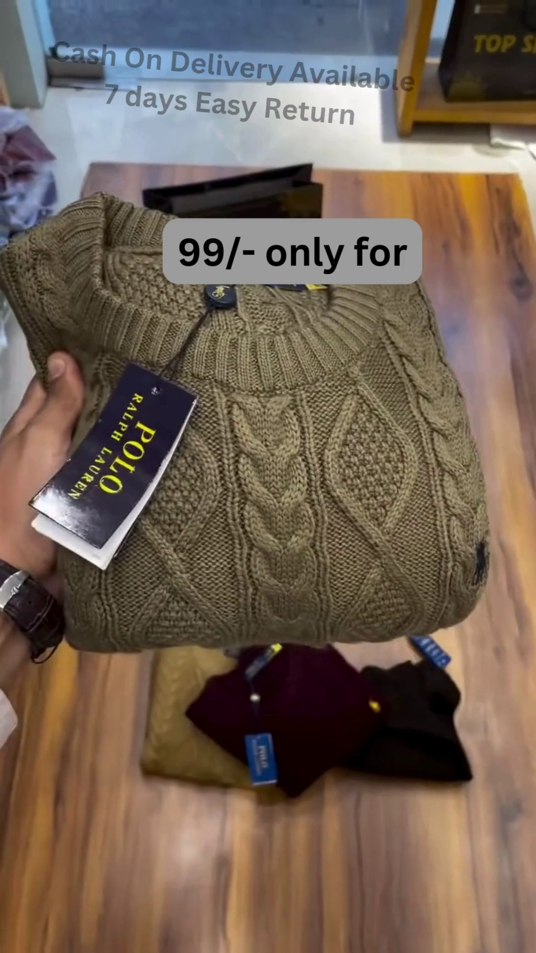 Cable-Knit Sweater Collection 🧶🍂 With Folded Display – Black, Mustard, Maroon & Brown Variants