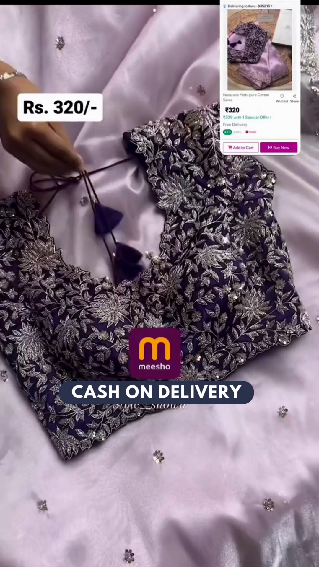 BLOUSEBlouse Fabric :SilkBlouse Length :38 cmBlouse pattern :ReadymadeSaree Blouse work :Sequins & CutdanaSaree Blouse Color :Parachute Purple