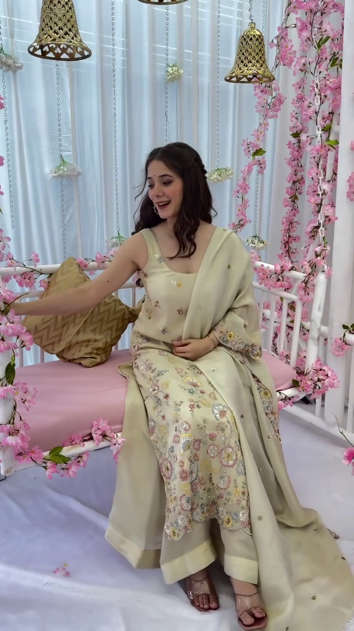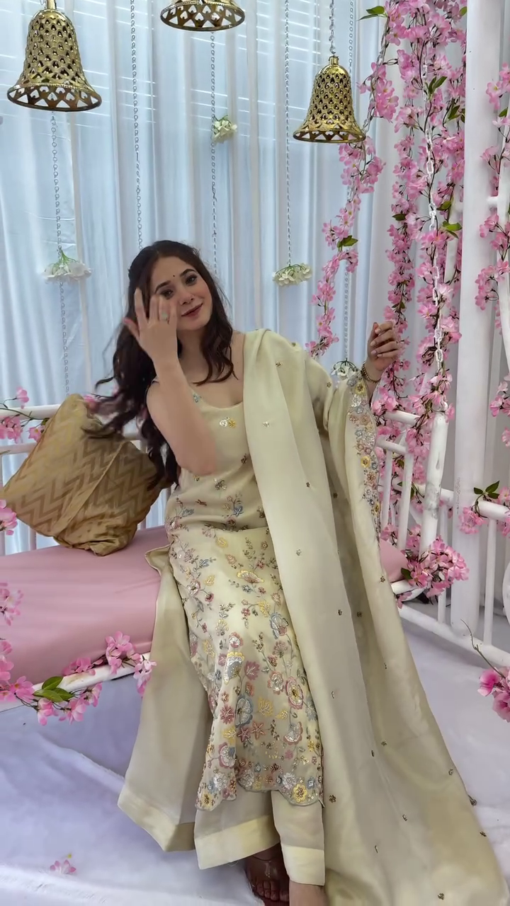 New Beautiful Designe Collection Fancy Embroidery And Sequins Work Kurti - Bottom With Dupatta.
